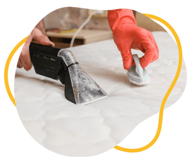 ويتم عن طريق رش مواد خاصة بالأقمشة للمحافظة على الألوان وخيط القماش كي لا يخشن أو يهترئ، ثم يتم فركها بفراش خاصة، ثم شفطها بآلات خاصة بشفط المواد، وتكرر العملية حسب حاجة االفرشة، ومن جميع الأوجه الستة، ثم تعطيرها، يتوفر لدينا أيضا خدمة إضافية للتنظيف بماكنة البخار، حيث يتم تنظيف الفرشة بالبخار أيضا بعد تنظيفها بالمواد الخاصة.
