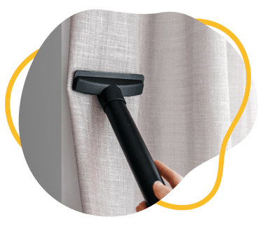 يتم تنظيف الستائر في الموقع إن أمكن، ويتم عن طريق رش مواد خاصة بالأقمشة للمحافظة على الألوان وخيط القماش كي لا يخشن أو يهترئ، ثم يتم فركها بفراش خاصة، ثم شفطها بآلات خاصة بشفط المواد، وتكرر العملية حسب حاجة الستائر، ثم تنظف بالبخار، ثم تعطر.