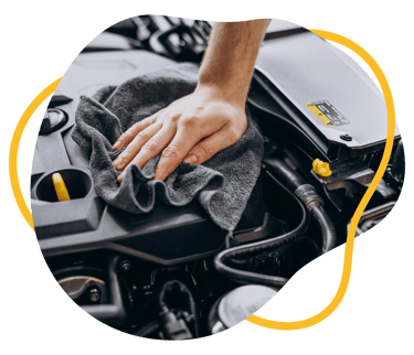 يتم تغطية المحرك والبطارية وعلبة الفيوزات قبل الغسيل للحفاظ عليها من الماء، وبعد غسل الحديد وتليفه وغسيله مرة أخرى بالمضخة، يتم كشف الأجزاء المغطاة وتنظيفها بكميات بسيطة من الماء والمواد المناسبة المزيلة للزيوت والشحوم للحفاظ عليها من العطب، ومن ثم تجفيفها ثم يتم تلميعها وتشميعها بمواد خاصة بتلميع المحركات والبلاستيك.